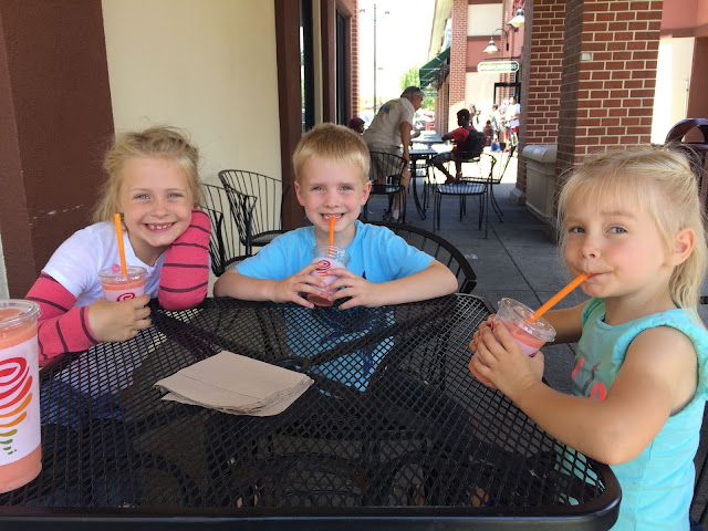 We went to Jamba Juice at the end of the last day of school to celebrate the start of summer. Freedom! Woo hoo! Then we came home and had a massive water fight with brand new water guns!