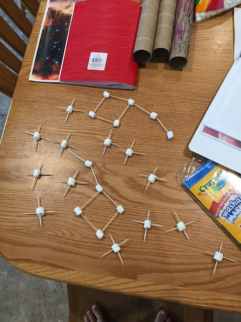 We are studying space in our science unit. Everyone liked making marshmallow and toothpick constellations, and it's been fun to listen to Gustov Holst's The Planets composition while we study.